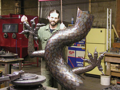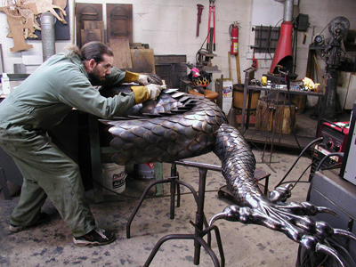 At the moment, Ken is putting the finishing touches on the dragon's head and mane. It represents about 6 months of solid work so far, and is on schedule for its Sept. 1, 2009 debut.