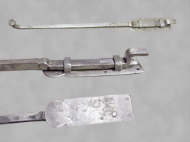During the course of Ken's daily metalworking, clients will bring (or send) him antique items in need of repair. Usually, these folks either had no luck finding a modern copy of their item, or simply did not wish to dispose of an historic piece of metalwork, and thereby compromise the authenticity of their piece.