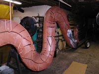 Here you will find working photos of Ken's most current project. At the moment, he is putting the finishing touches on a 16 foot long steel dragon. It represents about 6 months of solid work so far.